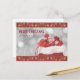 Elegant rött och guld julkort med en påse fullt Julklapp i ram, försedd med holly och bär.