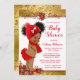 Julbabyduschinbjudningar till barn med ätliga afrikanska flicka med söt afro-hår klädda en söt röd kontur på söt röd och guld poinsettia bakgrund. Den här söta julbabyduschinbjudan är lätt att anpassa för din händelse genom att helt enkelt lägga till den text du behöver för evenemanget.