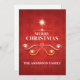 Ge julstämningen till ditt hem eller kontor med denna vackra illustration av strömmande snören i guld, silver och vitt som har Julafton önskat ord "God jul" i ett fet vitt typsnitt i mitten. Utformningen ser ut som en Julgran och en ljusnande vit stjärna visas överst och i grund kant. Bokstäverna placeras mot en djup röd bakgrund som infunderas med snöflingor. En mall för ditt företag, företag eller din familj namn visas nedanför träd. Dessa är idealiska som fotografibakslag för den kommande helgdag.