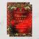Röda och guld Klockor Holly-inbjudan till Julfest. Utandning och diamanter från elegant guld med röd, shimmer festive-bakgrund. Obs! All platt bilder!