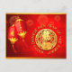 Red Guld Lanterns Chinese Rabbit papper-cut 2023 P Vykort
