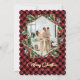 Elegant Red och guld har ett foto på God jul-kort med ett geometriskt foto ram omgivet av en hollisk krans mot en röd buffel som plaid mönster. Anpassa enkelt det här helgdag med foton och text.
