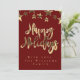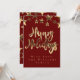 Julrött med Guld Se Stars Mönster Modern Script Glad helg Elegant julkort