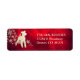 Den här särskilda returadressetiketten har en lekfull guld silhouette Fox Terrier-bild framför en spray av ornate guld snöflingor. Bilden placeras på en övertoningsdjup röd bakgrund som nästan ser ljussken ut. Din anpassningsbar är i blek guld vid högerna av bilden. Vackert!