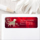 Den här särskilda returadressetiketten har en guld-silhouette Labrador Retriever-bild framför en spray av ornate guld snöflingor. Bilden placeras på en övertoningsdjup röd bakgrund som nästan ser ljussken ut. Din anpassningsbar är i blek guld vid högerna av bilden.