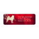 Denna särskilda returadressetikett har en silhuett från guld, norska Elkhound-bild framför en spray av ornate guld snöflingor. Bilden placeras på en övertoningsdjup röd bakgrund som nästan ser ljussken ut. Din anpassningsbar är i blek guld vid högerna av bilden. Vackert!