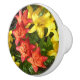 Briljant och vibrerande gult och röd bläck med grönt designad keramisk dragkraft, dörrknapp. Tryckt i vibrerande färg, underbar för gåva eller personlig använda.