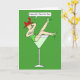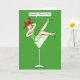 En tecknad dam i ett enormt cocktailglas som säger " Lycklig St. Patrick's Day". Bilden har en livfull färgad för grönt.