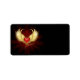 Ljusrött hjärta av en ängel med gyllene vingar som lyser i mörkens strålande röda bakgrund som dekoreras med mönster.