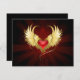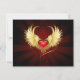 ljust rött hjärta av en ängel med gyllene vingar som lyser i mörkens strålande röda bakgrund som dekoreras med mönster.