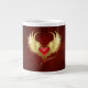 Ljusrött hjärta av en ängel med gyllene vingar som lyser i mörkens strålande röda bakgrund som dekoreras med mönster.