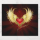 Ljusrött hjärta av en ängel med gyllene vingar som lyser i mörkens strålande röda bakgrund som dekoreras med mönster.