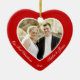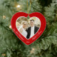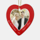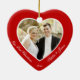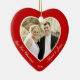 Foto på anpassningsbarna av rött hjärta vår första julprydnad med anpassadets foto och text - du kan lägg till bild, namn och år - i form av ett hjärta