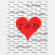 Stor röd hjärna med Monogrammed initialer i svart text. Kärlek, Kärlek mer står i bakgrunden i skript och fet text mönster mot vit bakgrund. Originalteckningsutkast © TamiraZDesigns.