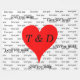 Stor röd hjärna med Monogrammed initialer i svart text. Kärlek, Kärlek mer står i bakgrunden i skript och fet text mönster mot vit bakgrund. Originalteckningsutkast © TamiraZDesigns.