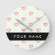 Red Hearts Mönster, Kärlek, ditt namn, anpassa Rund Klocka