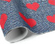 Red Hearts on Denim Wrapping Papper Presentpapper