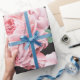 Sömlös mönster med rosa ros och röda hjärtan på mörk grått-bakgrunden, digital konst.