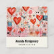 Affärskort med en roligt blandad media stil mönster. Stora röda hjärtan och olika slumpmässiga former som är spridda runt skapar ett beundransvärt sött mönster.