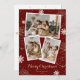 helgdagskort för fotokollage med rött God jul som innehåller snöflingor och gåvor. Anpassa enkelt din egen bild och text.