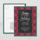 De här vykorten för flytta av avslappnader och julgranar har en röd, grönt och svart pläterad bakgrund, med ett svart skådespel och ett modernt, handskrivet manustypografi som säger "Glad helg från vårt nya hem". Ett underbart sätt att önska vänner och familj en lycklig-julhelg, samtidigt som de får veta att ni har en ny adress!