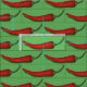 Fabric har en originalmarkörillustration av rader med röd hett cayenne chili paprika, tryckt på gröntens bakgrund.