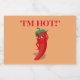 En röd och hett peppar tecknade figurer. Ursprunglig design. Livsmedelsbehållarens etikett för kryddat hett mat. Version med anpassade text och bakgrund färg.