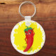 En röd och hett peppar tecknade figurer. Ursprunglig design med gult stänk-bakgrund. Anpassningsbarnas nyckelringar. Gift idé.