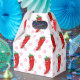 En röd och hett peppar tecknade figurer. Rosa polka dot mönster. Underbar för party-dekoration. Gift idé för människor som gillar chilipeppar och krydda mat!