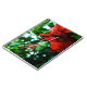 En röd hibiscus-blomma med tidningspapperseffekt tillämpad på bilden.