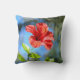Röd hibiscus på bakgrunden blå himmel och handflatan träd, målareffekt