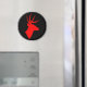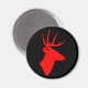Svart magnet med röd hjort silhuett.