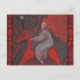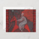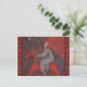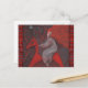 Vykort med "Red Horse"-målning. En vacker kvinna med lång ingerhår som rider på scarlets röda häst genom nattskogen. Stiliserad träd och blommor som omger dem, fullt måne tittar från himlar. Röd, grått, orange och brunt färg. Fantasykonst, pastellmålning, ritad med fantasi. Mjuka pasteller på papper, 2016 © Clipso-Callipso / Julia Khoroshikh
