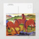 A bra art postcard with Red Horses (1911) av Franz Marc (1880-1916). Marc var en tysk konstnär från expressionsrörelsen och grundade den grupp konstnärer som hette Blue Rider (Der Blaue Reiter). Hans arbete kännetecknas av starkt primärt färg och kubistiska djur. Den här målningen skildrar tre röda hästar på ett grönt hilly liggande landskap.