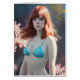 Alla reserverade höger © Angelandspot En röd kvinna i en blå bikini AI-genererad konst