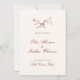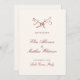 The save the date card features an off white background, offering a serene and classic canvas that enhances the minimalist design. The elegant dark red font, inspired by vintage calligraphy, adds a touch of sophistication and warmth. This carefully selected typography complements the artistic elements, ensuring your wedding details are presented with style and clarity.
