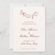 The save the date card features an off white background, offering a serene and classic canvas that enhances the minimalist design. The elegant dark red font, inspired by vintage calligraphy, adds a touch of sophistication and warmth. This carefully selected typography complements the artistic elements, ensuring your wedding details are presented with style and clarity.