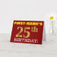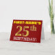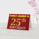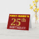 Den här födelsedagskalenderns hälsningskort innehåller ett meddelande som "FIRST-NAMN's 25:e BIRTHDAY!", där "25:e" har ett utseende som liknar guld och liknar färg. Mottagarens namn på framsidan kan anpassas, och frambakgrunden är färgadens röd. Det innehåller också ett hälsning-meddelande från anpassadets födelsedag på insidan. Ett sådant här födelsedagshälsningskort kan kanske ges till någon i firande på deras tjugofemte födelsedag. [~Z0000184]