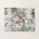 Ett mycket utmanande pussel som ger en detaljerad bild av en grönt med röda blommor på en vit vägg.