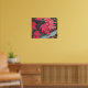 Decorate a living space during the autumn season with this poster print featuring a photographic image of colorful, red Japanese Maple leaves contrasting against a grey, wooden building. A stunning, botanical image! Select your poster size and other options as desired.