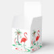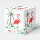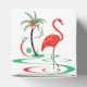 En roligt-, fetiv-, flamingodesign med en retro-beröring i rött och grönt. Röda flamingor vajade i vatten bredvid handflatan träd, dekorerade med julbalkar och band. Ett anpassade som du kan anpassa med egen text, bilder och egna idéer. En originalbild för digital konst skapat av Jess Perry.