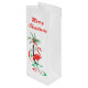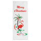 En roligt-, fetiv-, flamingodesign med en återtryck i rött och grönt. En röd flamingovågor i vatten intill handflatan träd, dekorerad med julbalkar och band. Ett anpassade som du kan anpassa med egen text, bilder och egna idéer. En originalbild för digital konst skapat av Jess Perry.