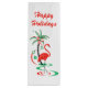 En roligt-, fetiv-, flamingodesign med en återtryck i rött och grönt. En röd flamingovågor i vatten intill handflatan träd, dekorerad med julbalkar och band. Ett anpassade som du kan anpassa med egen text, bilder och egna idéer. En originalbild för digital konst skapat av Jess Perry.