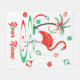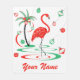 En roligt-, fetiv-, flamingodesign med en återtryck i rött och grönt. En röd flamingovågor i vatten intill handflatan träd, dekorerad med julbalkar och band. Ett anpassade som du kan anpassa med egen text, bilder och egna idéer. En originalbild för digital konst skapat av Jess Perry.