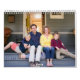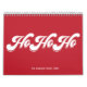 Röd julkalender Ho Ho-väggen med vit utbytbar text på omslagssida och utbytbara foton för varje månad på året. Fotografi © Storytree Studios, Stanford, CA