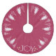 En röd Julgran-skirt designad med vit Träd med Guld färgad stjärnor Texten innehåller ord: JOY.