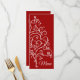 Anpassa Red Julgran Winter Wedding Menu till den måltid som du kommer att på månen i december möhippa, på giftermål-middagen eller efter bröllop brunch genom att lägga till salladen eller första kursen, in- eller andra kursen och dessert eller tredje kurs. Anpassa den med namnen av brudgummen, platsen och händelsemedatum. Den här snabbmenyn för anpassningsbar av elegant har en kompakt utformning av det vita julafton träd med röd bakgrund.