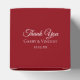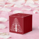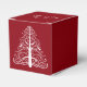 Anpassa söt Red Julgran Winter Wedding Favor Box med namnen av brid- och brudgummen och ceremonin i giftermål. De här elegant-anpassningsbarna har en tunn, vit Julgran-design med röd bakgrund. Perfekt eller idé för en klassvis vinter i december eller julafton förlovningsfest, möhippa eller bröllopsmottagning.