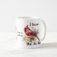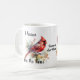 Modern Red Cardinal Watercolor Mugg, Personalize Remembrance and Grief Mugg, Introducing our exquisite water color mugg, med en vacker kardinal som genomborras på ett gren med ljust grönt löv. Denna fantastiska utformning, som trycks på båda sidor av det klassiska mugg, fångar naturens elegans och viskhet. Skapar en perfekt som tillägg till din samling eller som en tankfull gåva till dina nära och kära, PERSONALISERA den här designen genom att ändra texten till något som är mer meningsfullt för dig/dina nära och kära. Artist Tanya Arseneau Nanniesfineart