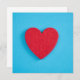 Den här designen har en bild av ett starkt rött hjärta som ursprungligen var gjort av filt. Den ställs in mot en ljusblå bakgrund.